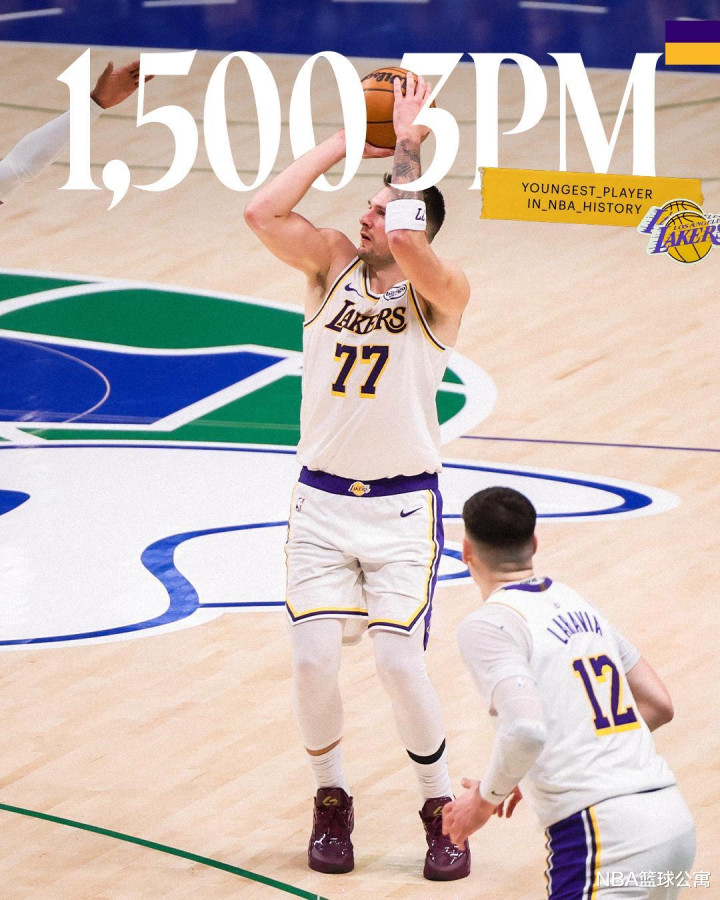 值得一提的是,东契奇在此役还创下了两大NBA历史第1的神迹。第1、当东契奇(26岁330天)投进此役第2记三分之际,其常规赛生涯三分命中数突破1500,NBA历史最年轻(此前为塔图姆、26岁362天)。