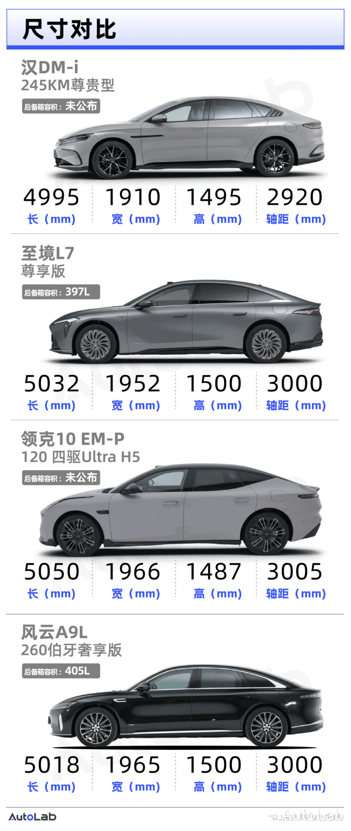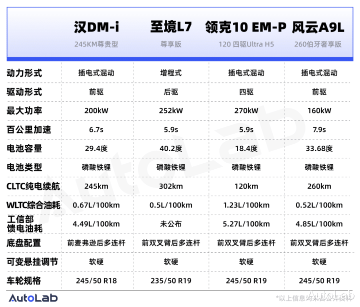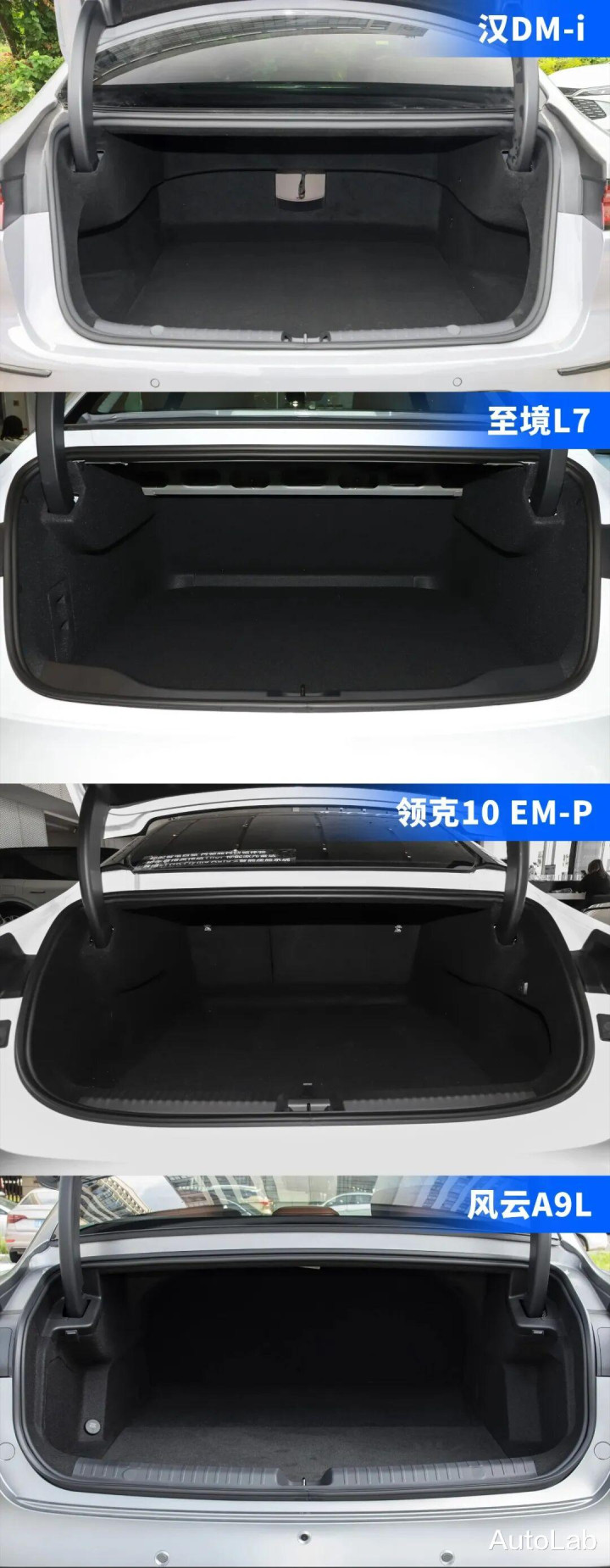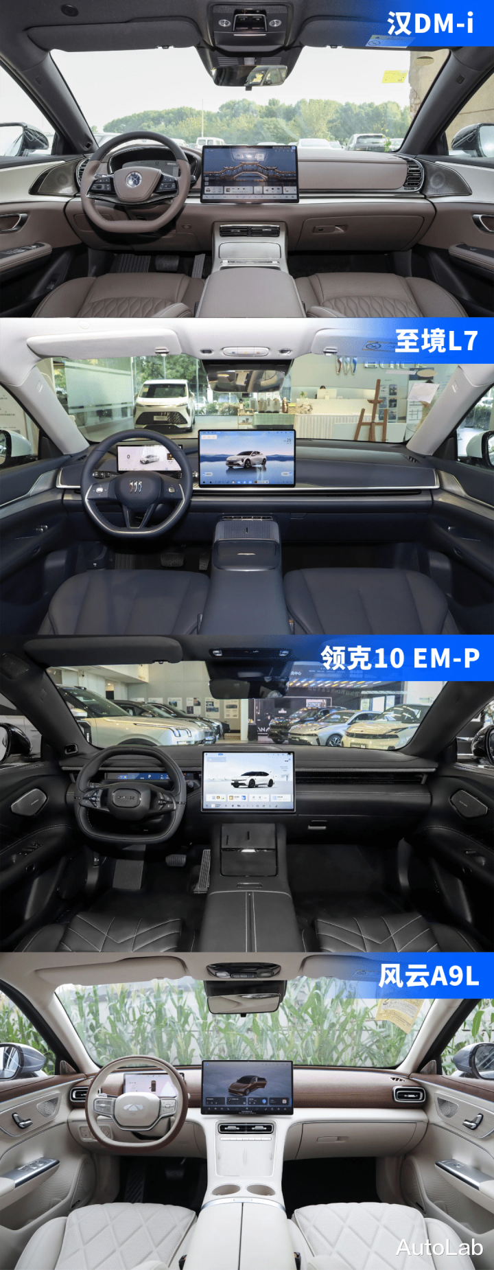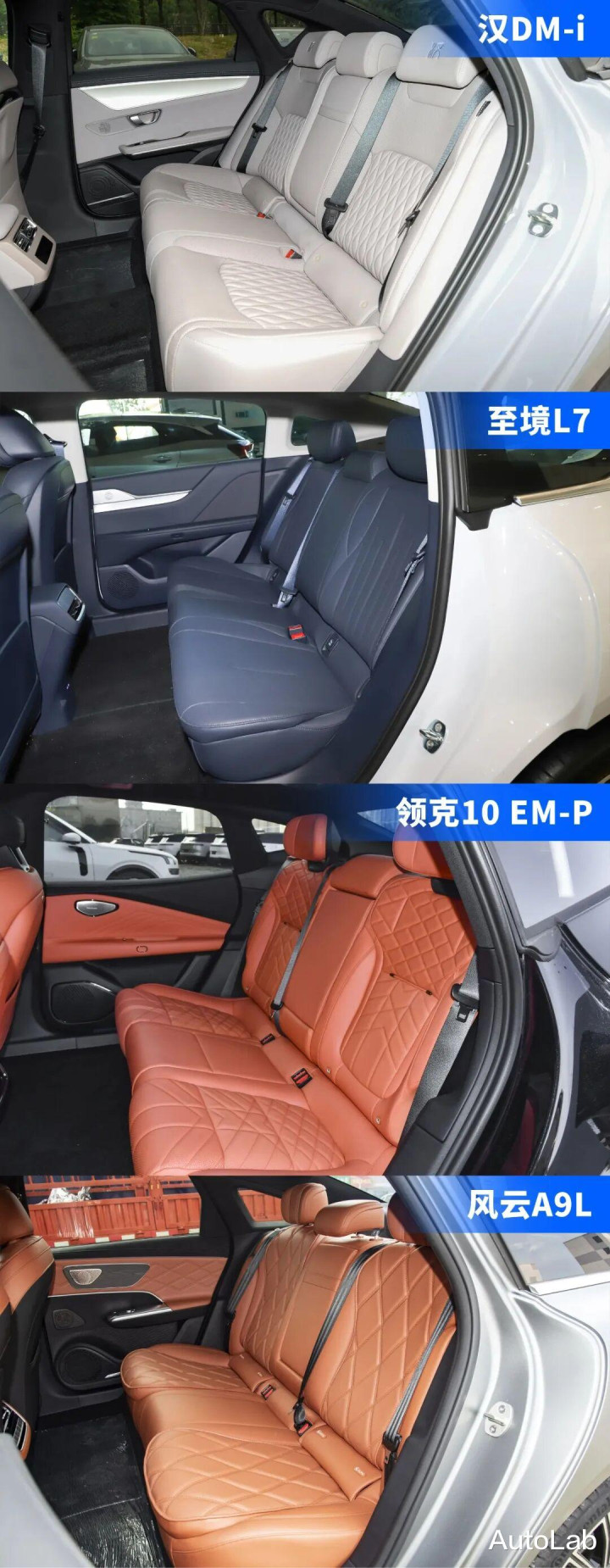 动力层面,汉DM-i、领克10 EM-P、风云A9L都是插混动力,而至境L7是唯一一款采用增程方案的车型,这也直接决定了它在纯电续航和用车逻辑上,更接近纯电车的思路。