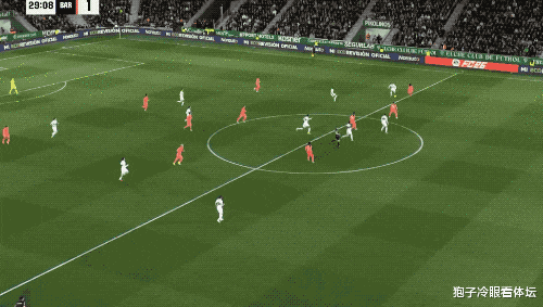 奥尔莫的射门击中横梁后,第29分钟,巴萨习惯性防线前压,阿尔瓦罗·罗德里格斯反越位成功,冷静将球打进。